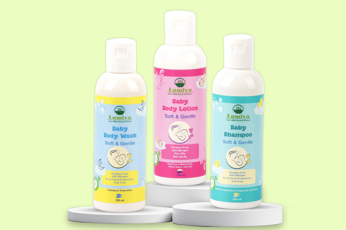 The Lumiva Complete Baby Care Combo is a gentle 3-step routine designed to cleanse, nourish, and protect your baby’s delicate skin and hair.