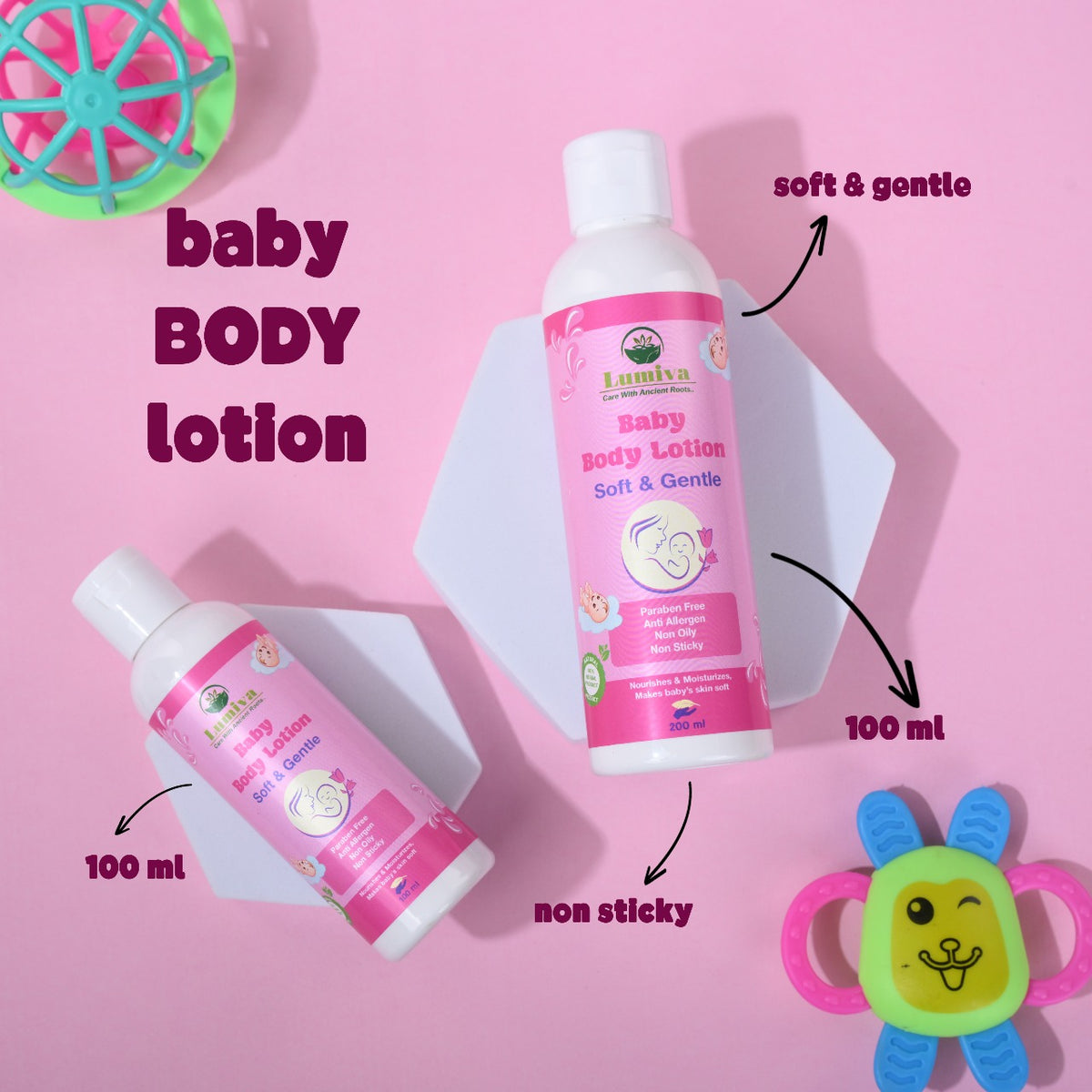 Lumiva Baby Body Lotion Soft & Gentle is a caring, hydrating blend designed to nurture and protect your baby’s delicate skin. Crafted with a mix of natural oils, herbal extracts, and moisturizing butters, it helps lock in hydration and maintain smooth, supple skin all day long.
