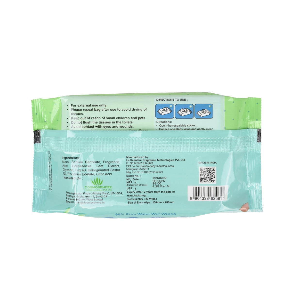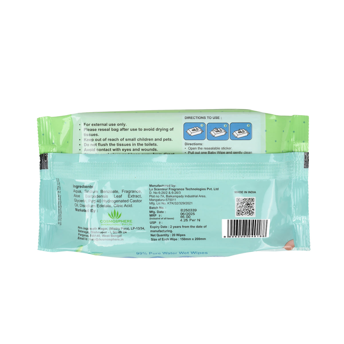 Infused with pure water, Aloe Vera, and Glycerin, these wipes gently remove impurities while keeping the skin calm, hydrated, and comfortable.